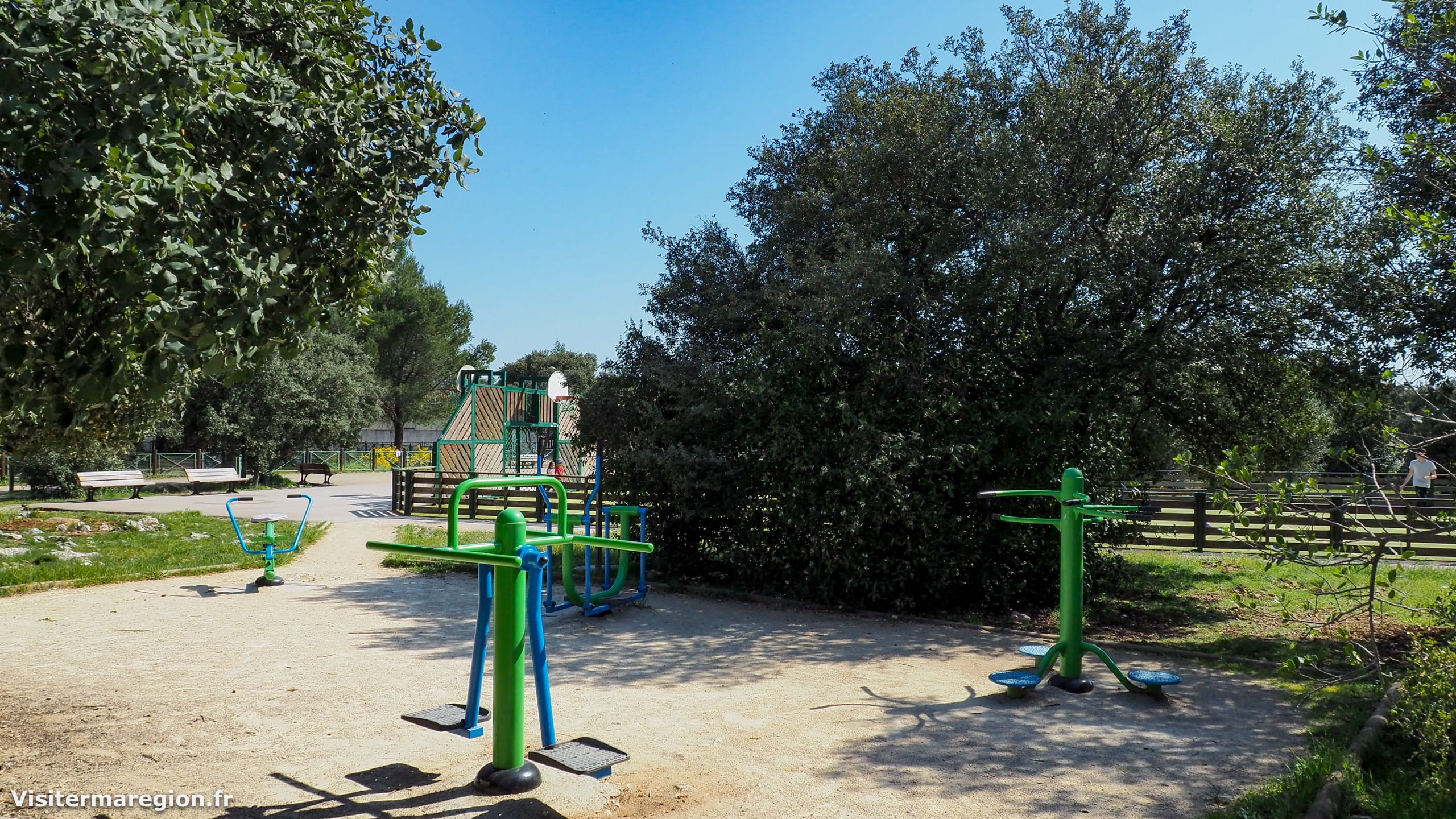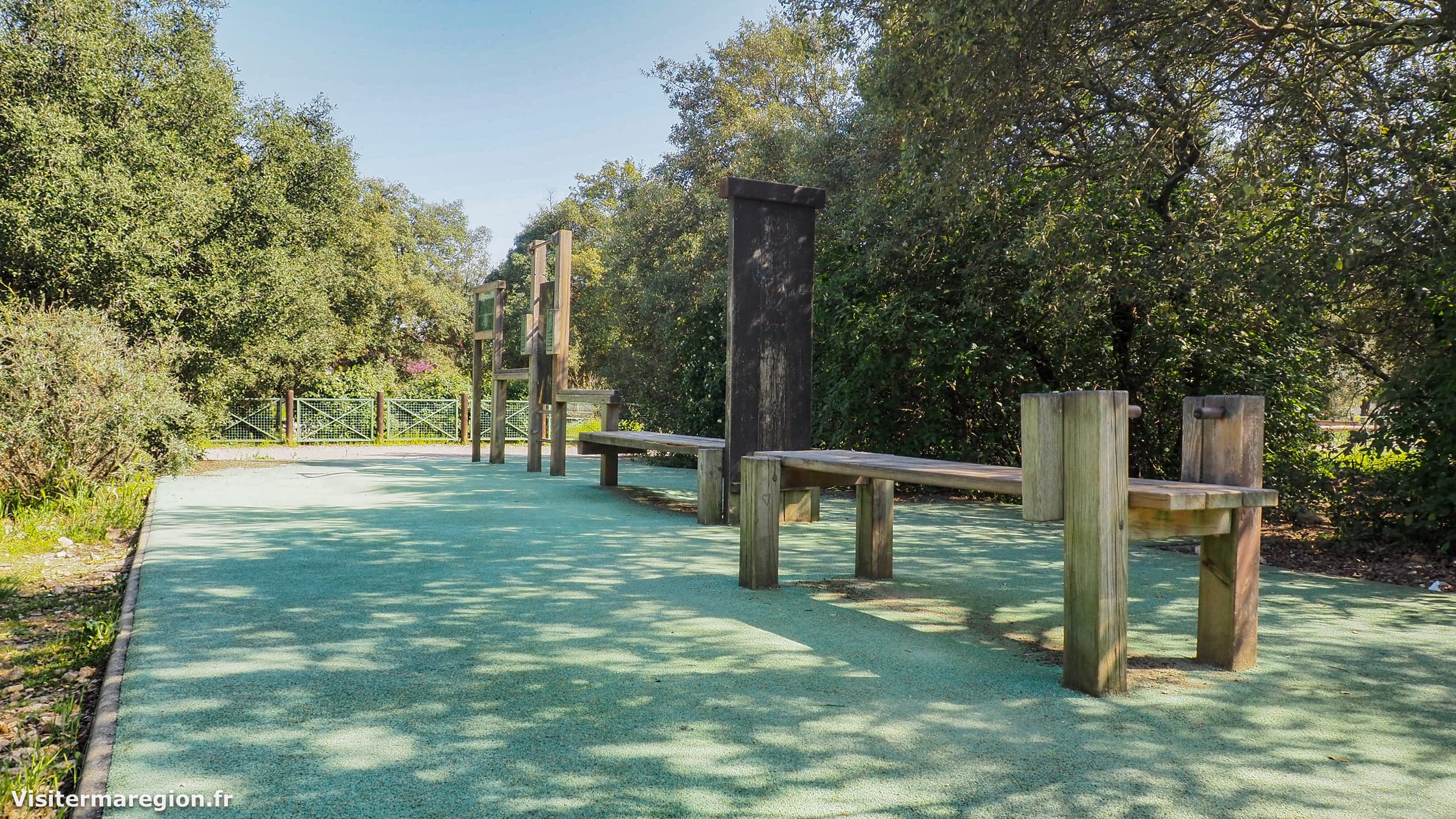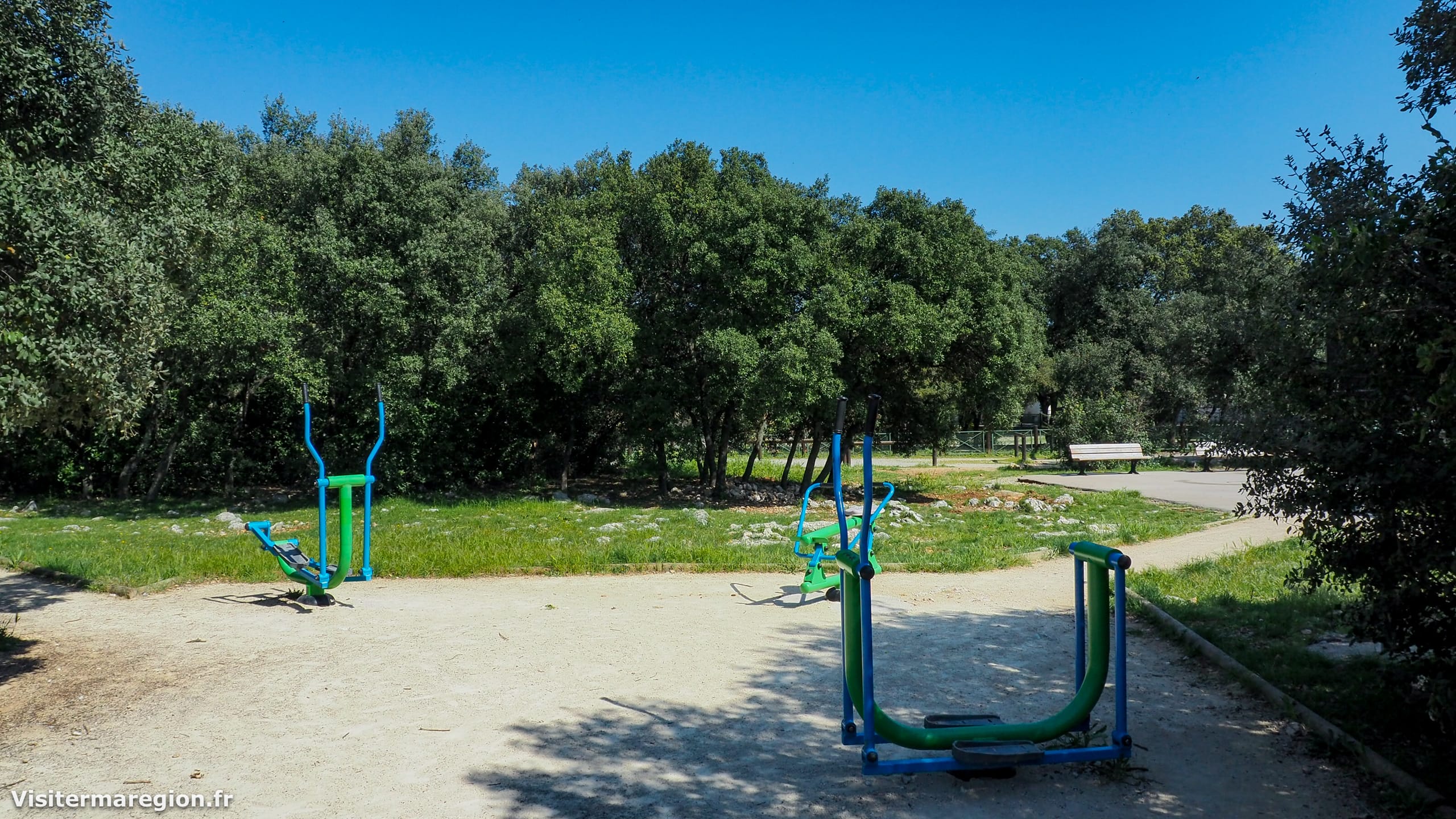 Puis, avant le début du parcours vous découvrirez des agrès de musculation et d’étirement ainsi qu’un petit espace équipé de machines de fitness (rameur, vélo elliptique) à côté.