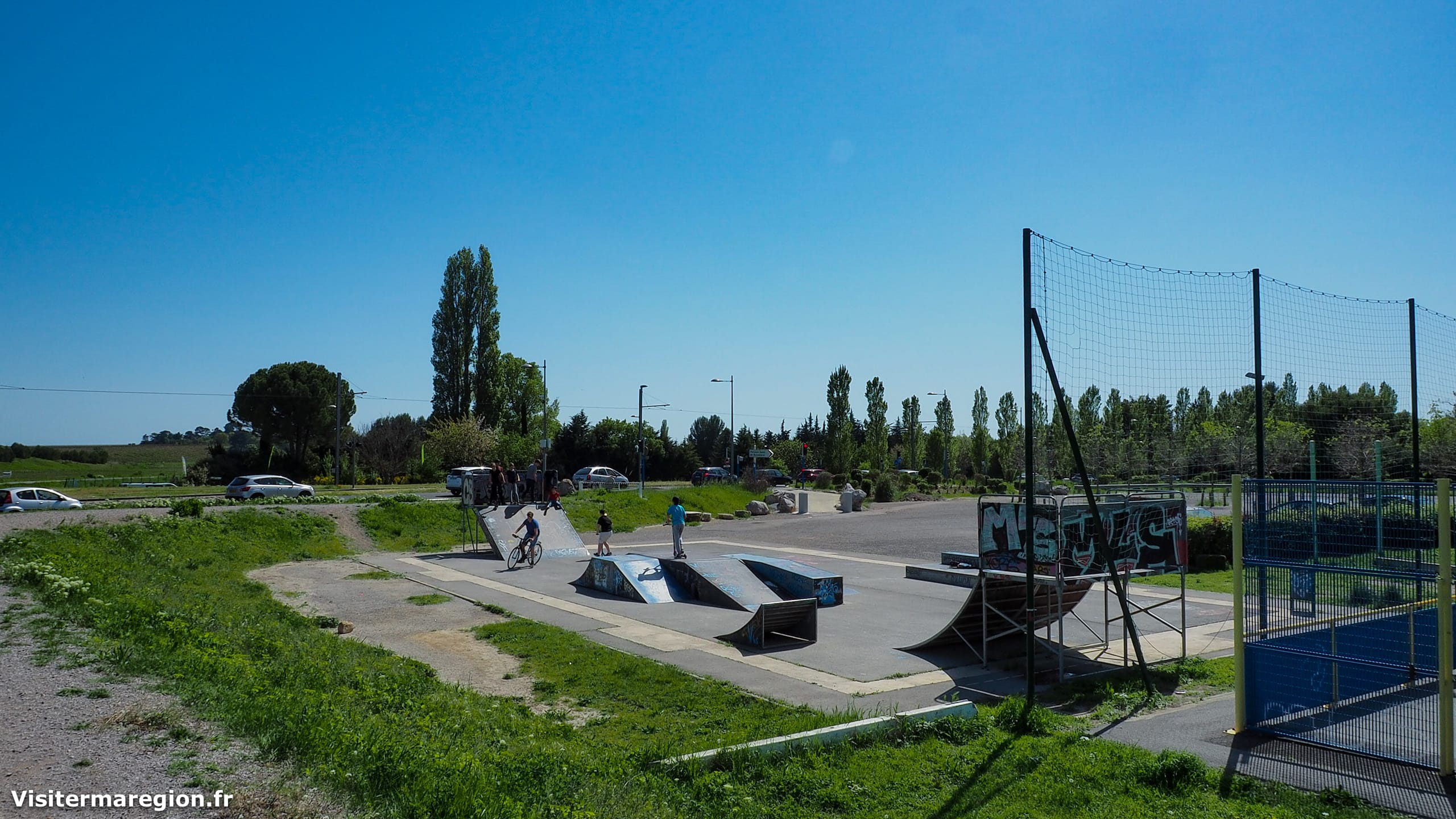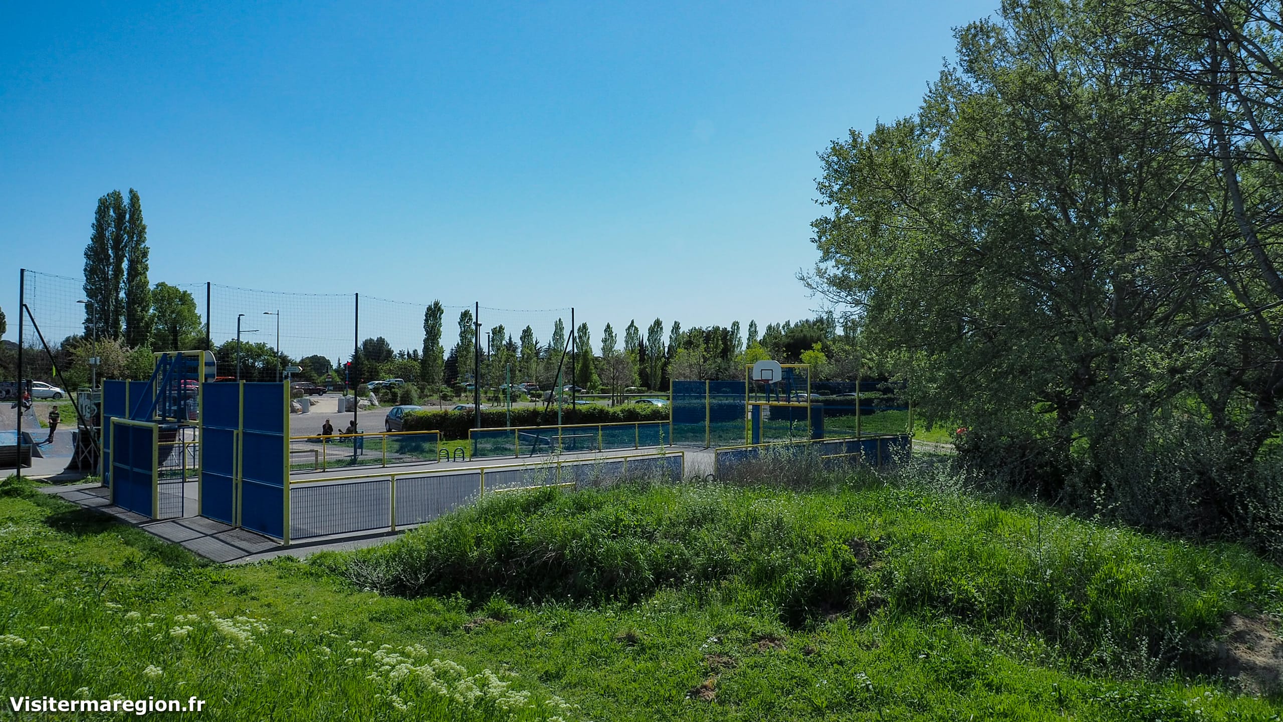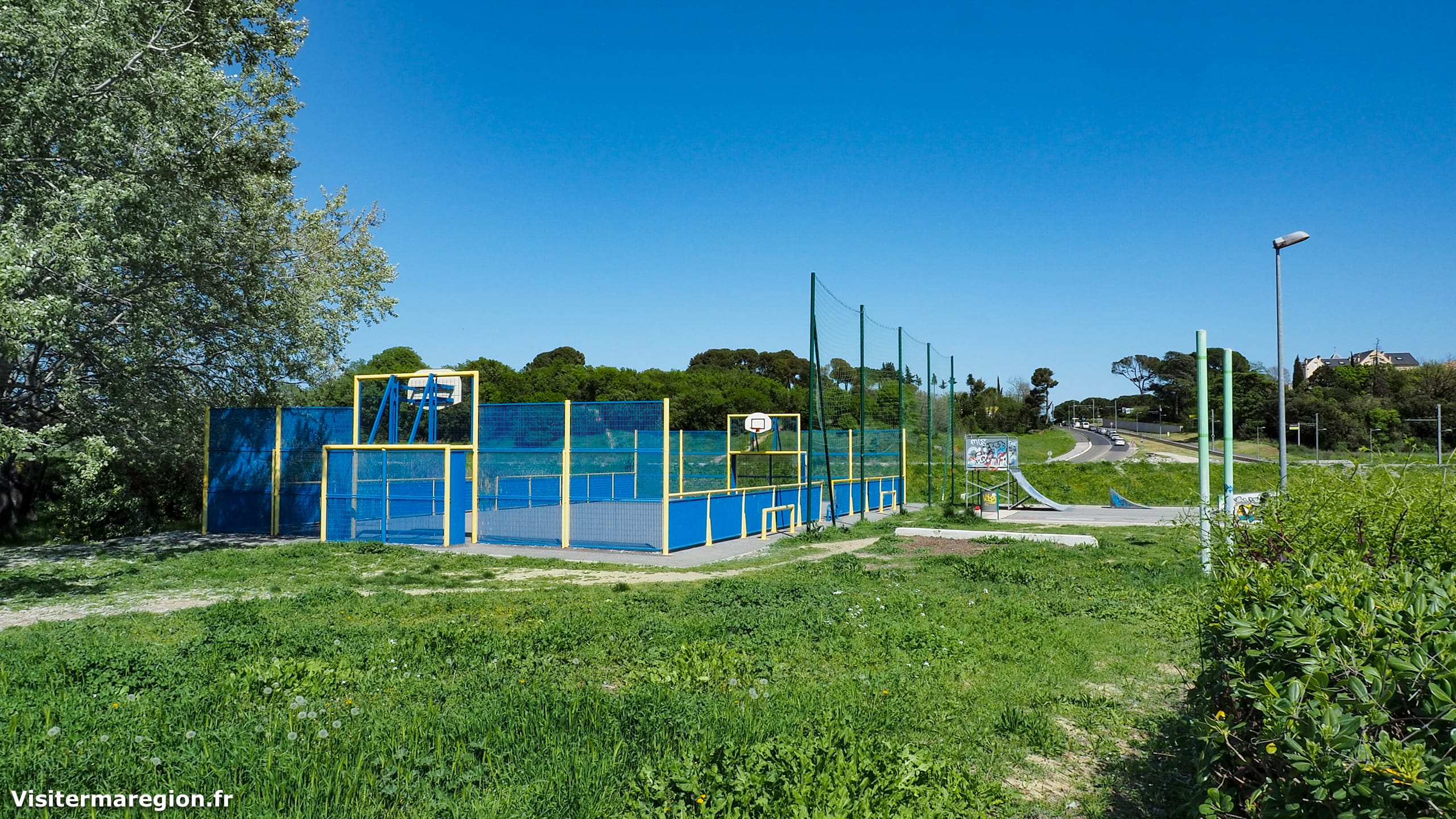 Un skatepark est aménagé à l’entrée ainsi qu’un terrain de basket.