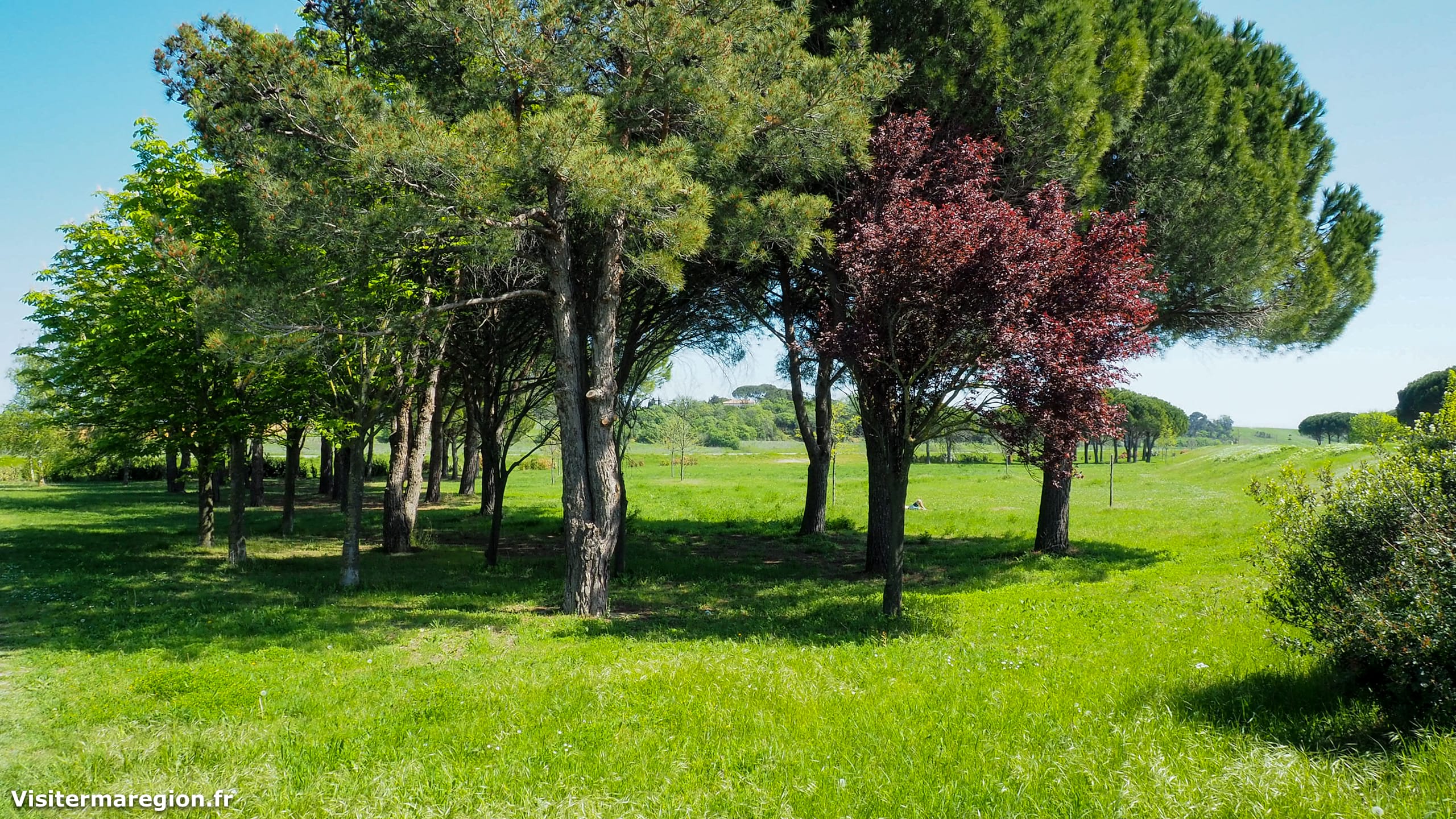 Plus loin, sur un grand espace de pelouse et d’arbres, vous pourrez vous installer sur de grands bancs.